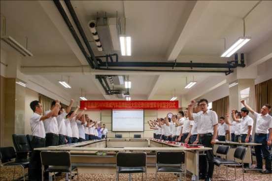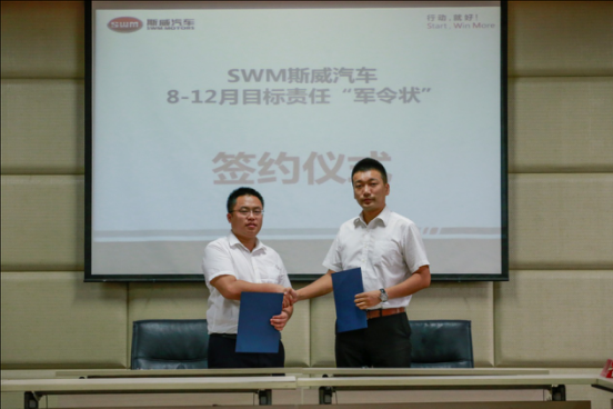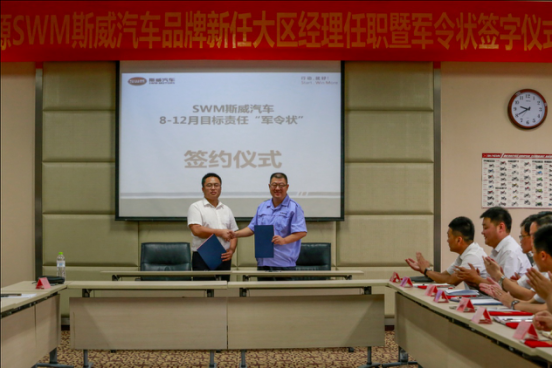 秋意濃濃灑豪邁,綠意騰騰映雄心。伴隨著重慶初秋的第一場雨,SWM斯威汽車大區經理任命暨8-12月目標責任“軍令狀”簽約儀式在鑫源工業園含谷基地隆重召開。
