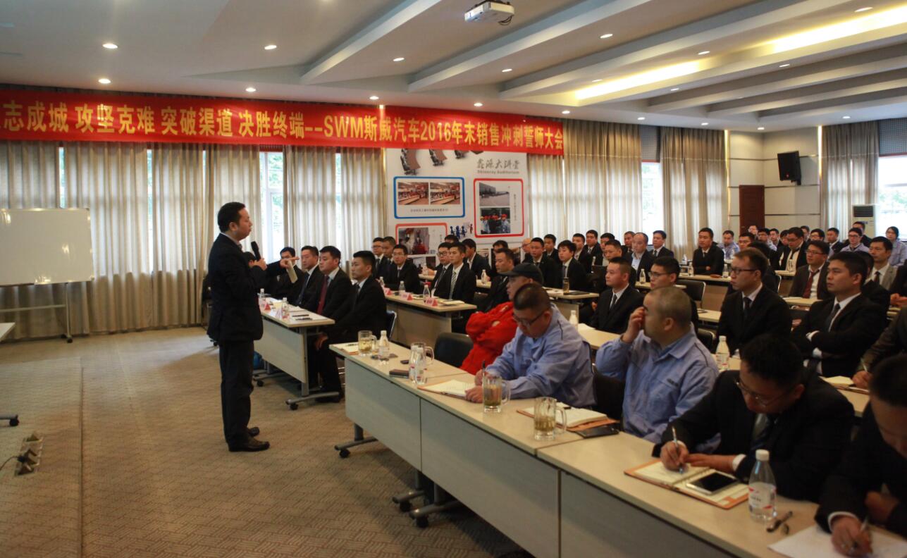 目標的完成當然是離不開我們不斷的學習與總結。在10月29日SWM斯威汽車2016年末銷售沖刺誓師大會召開之前,SWM斯威品牌事業(yè)部12個大區(qū)的大區(qū)及區(qū)域經理就渠道建設、銷售管理、品牌傳播、市場推廣、1.5T產品的賣點及相關傳播策略等方面進行了為期三天的學習與交流。駐外人員與駐內人員就以上方面前期的工作進行了梳理,對日常工作的常見問題進行了溝通,對后期的工作進行了安排。鑫源控股副總裁兼銷售公司總經理張洪巖先生全程參與了學習,現(xiàn)場與大家進行交流。通過三天的學習,所有人員對自己的工作都有了清晰的認識,同時也對以后的工作提出了新的要求,力爭在后期的工作中規(guī)避不足,通過我們每一個人的努力提升SWM斯威品牌的品牌形象。
