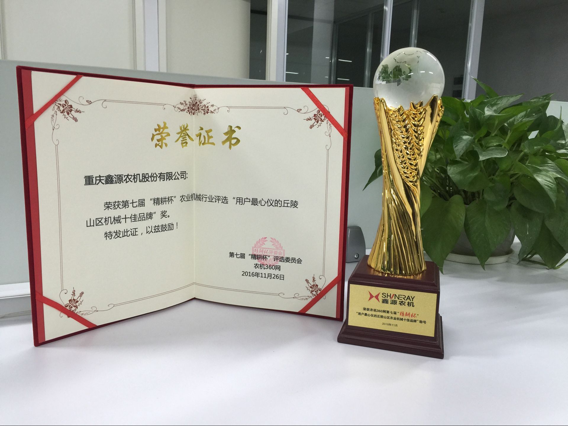 (第七屆“精耕杯”丘陵山區(qū)機(jī)械十佳品牌獲獎證書與獎牌)