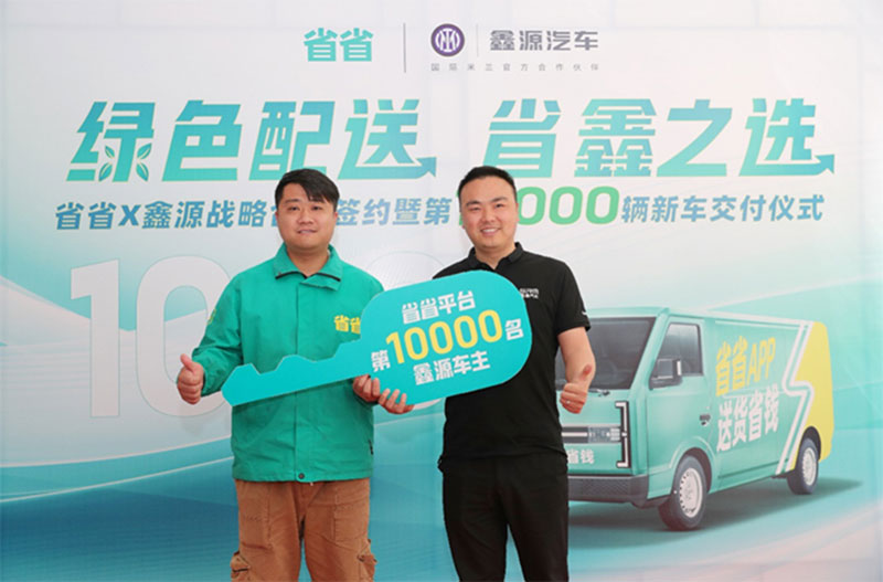 在活動現場,記者也見證了省省平臺第10000個購置鑫源汽車的用戶的交車儀式,他訂購的正是一輛最新款的鑫源新能源車E3L。該用戶表示,開新能源貨車省心不說,還能節省大筆的油費和保養成本,而且在城市中更方便,使用成本低,也幾乎不限行,運貨做生意更賺錢。